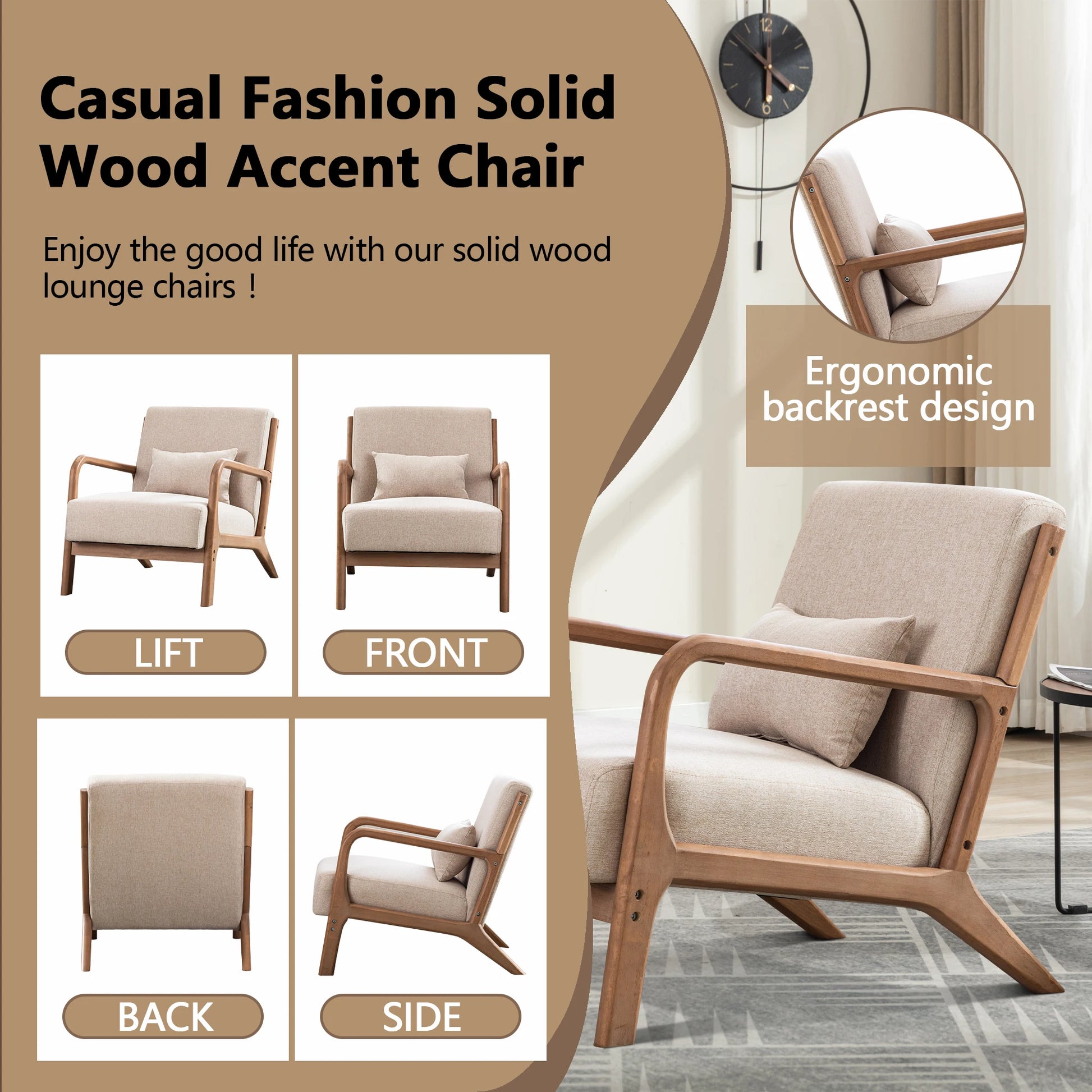 29*33*26 Inch Solid Color Solid Wood Living Room Chair. 105° Backrest with Non-Slip, Casual Bedroom Chair With Pillow