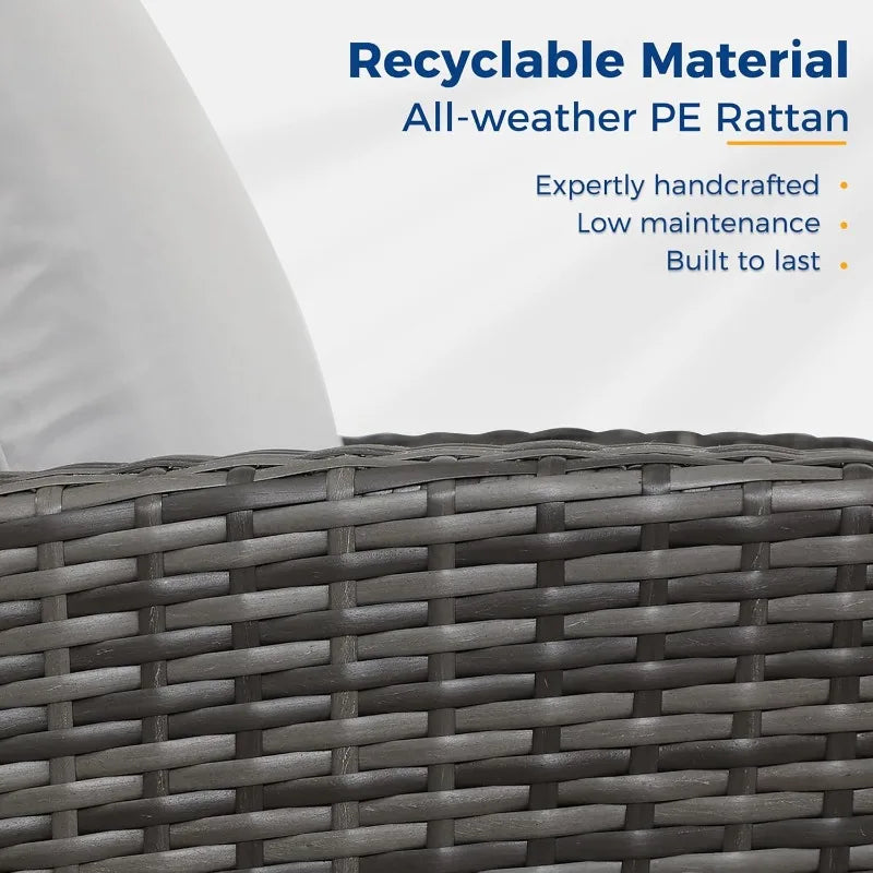 5-Piece Patio Set All Weather Wicker, Outdoor Sofa with Cushions & Glass Table, Grey Conversation Set